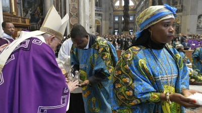 The celebrant began praying in his own language. Behind him, the men became a chorus and chanted in soft accompaniment as they continued beating their drums. Mesmerized, the fathers’ followed the Mass. When the time came for the Gospel, one priest changed the Missal from one side of the altar to the other. The chorus rose, and as the celebrant chanted the Gospel, they danced around the altar, chanting and beating their drums. The announcer said, “Behold the joy of Africa at having received the Good News of Jesus Christ!” At that, the almost 2200 council fathers began to applaud and cheer.