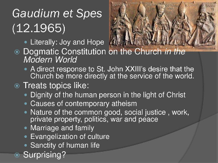 To help Catholics live in the new world that was dawning, Vatican II’s Constitution on the Church was telling them that they had their own individual vocations, and that they were able to discern God’s presence and intentions within themselves, and that they were spiritually empowered and responsible as sharers in Christ’s prophetic and kingly office to uplift and even correct their new environment in the grace of Christ, without imposing their faith on anyone. (See the various pages in this blog.)