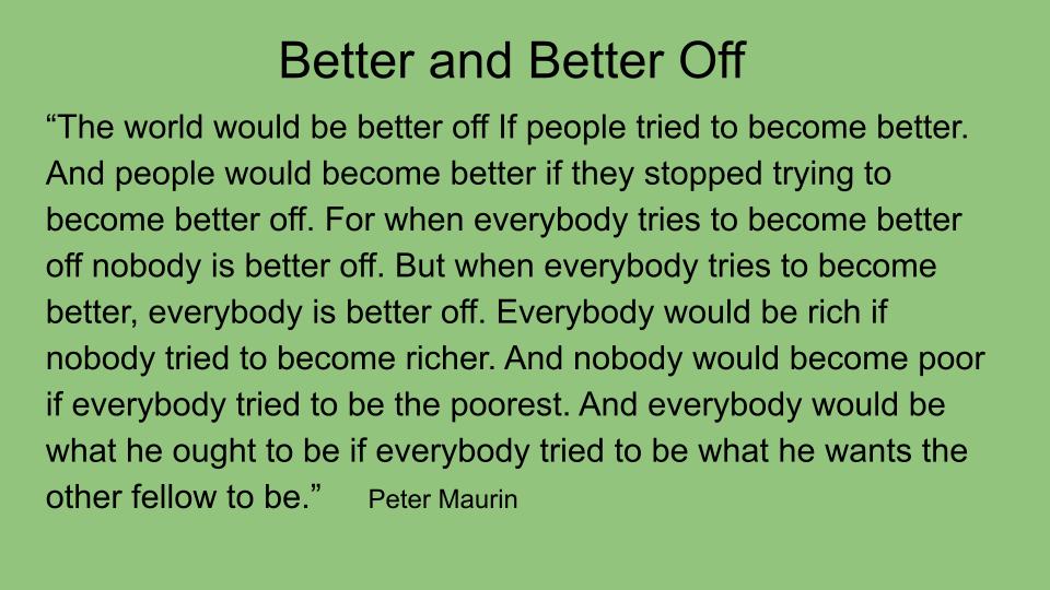 This section is devoted to the life and thought of Peter Maurin who co-founded The Catholic Worker Movement with Dorothy Day in 1933. https://www.catholicworker.org/petermaurin/